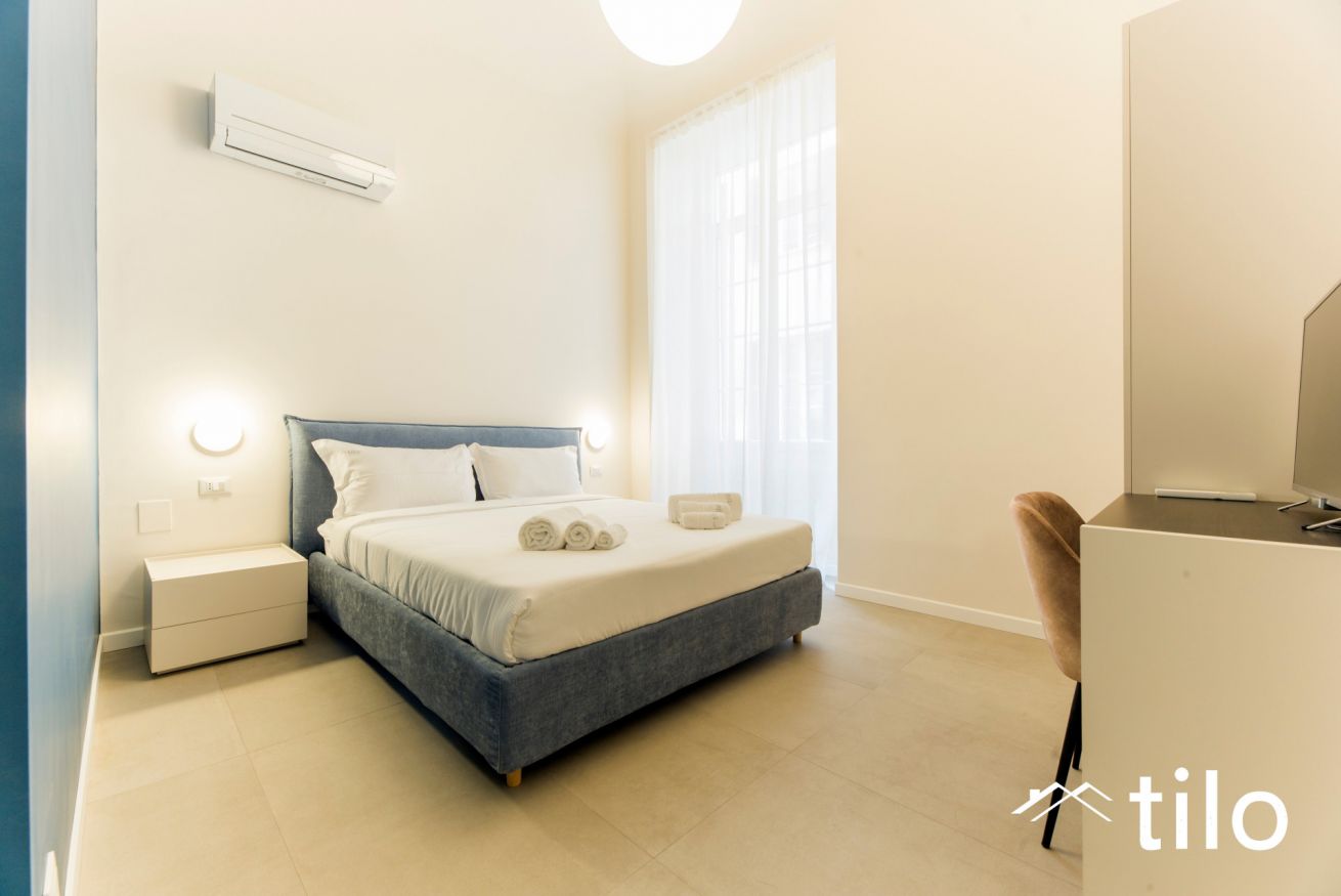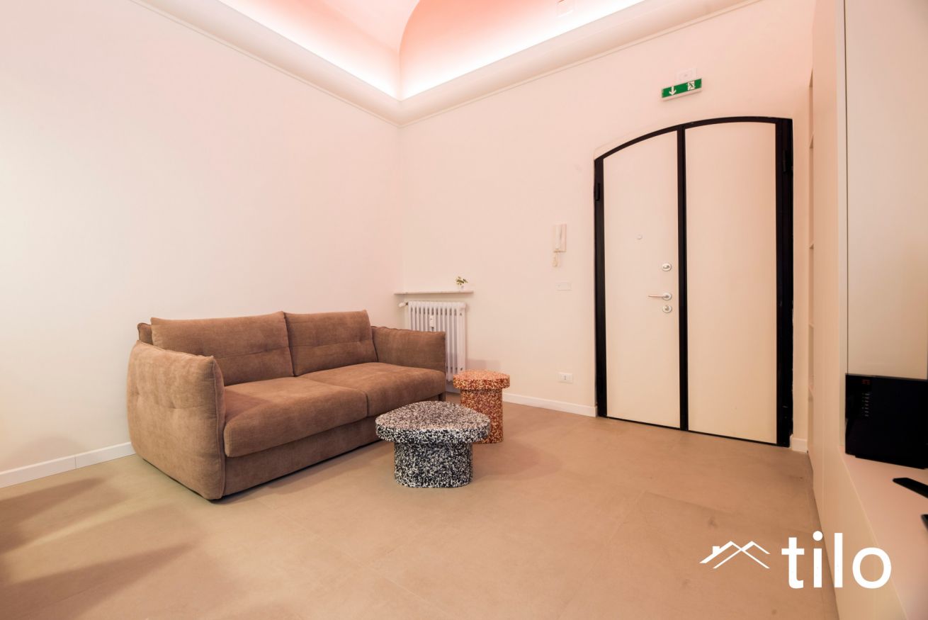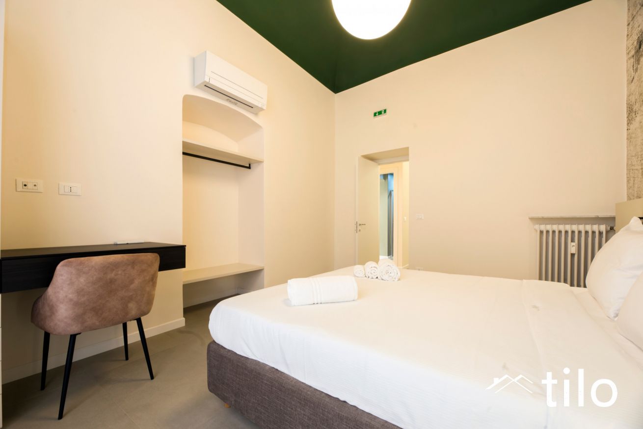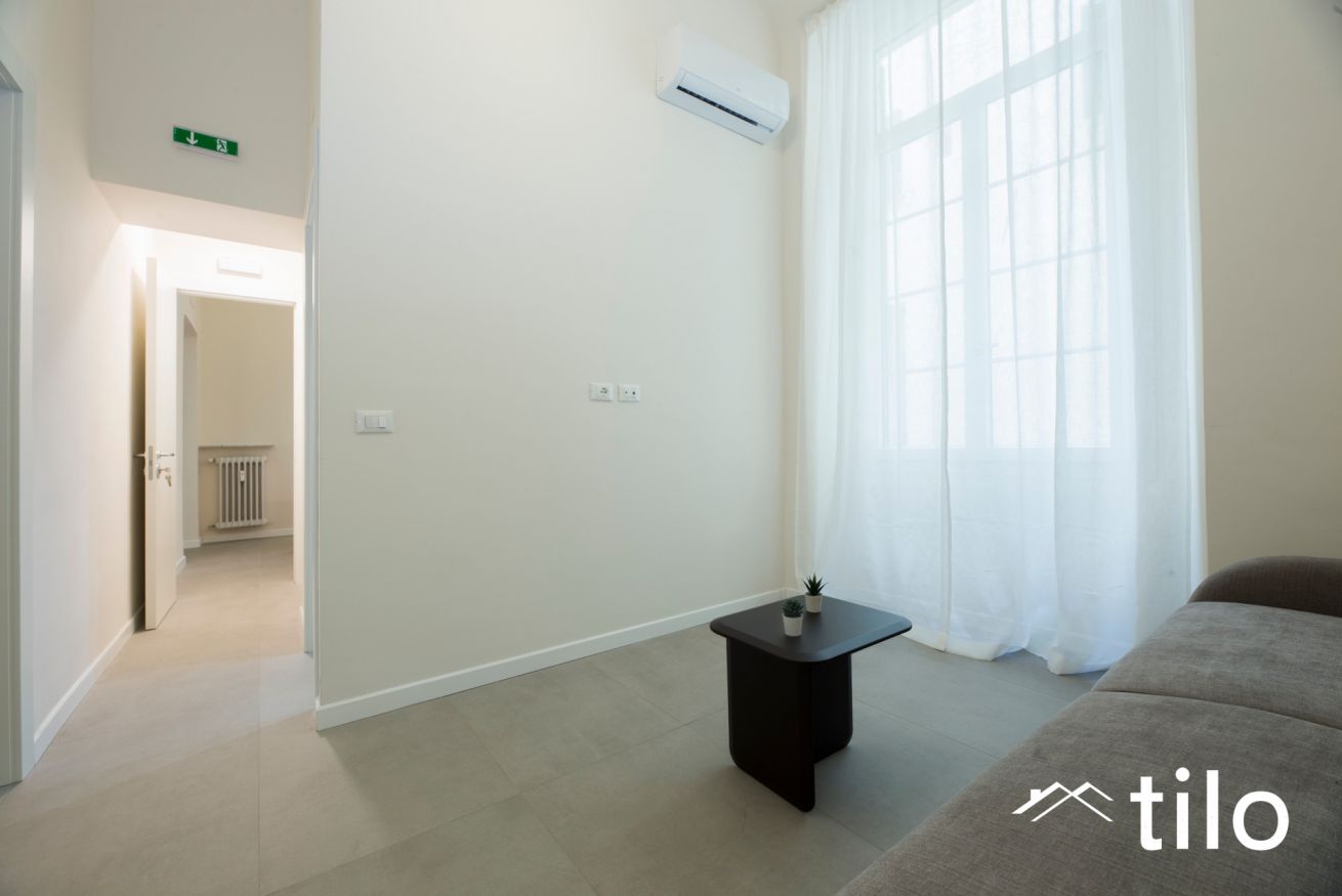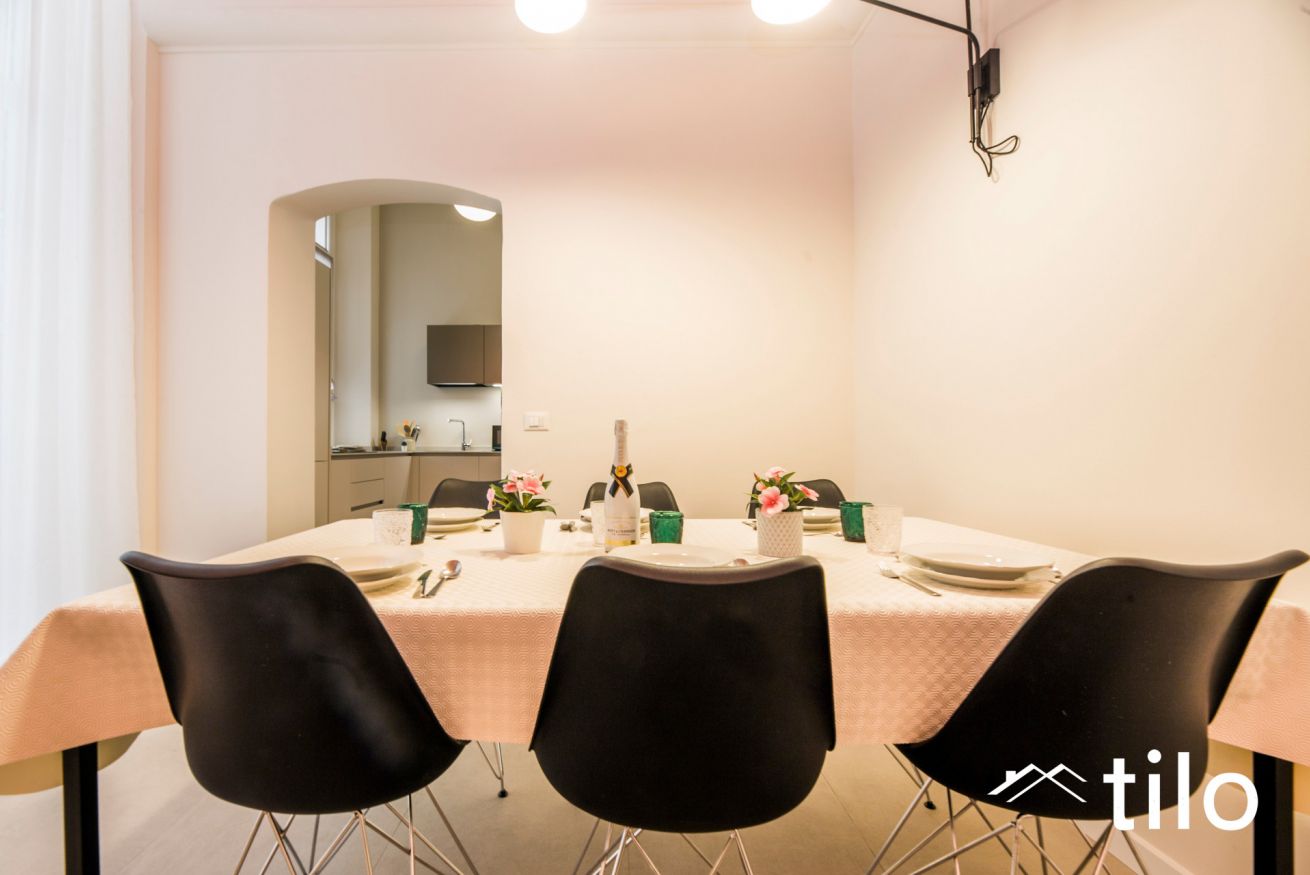 La zona giorno è il cuore della casa: un ampio open space che unisce soggiorno e cucina, perfetto per momenti di relax, lavoro o convivialità. Il soggiorno offre uno spazio accogliente dove rilassarsi dopo una giornata in città, mentre la cucina, completamente attrezzata, permette di preparare pasti in totale autonomia grazie a elettrodomestici moderni e utensili completi.