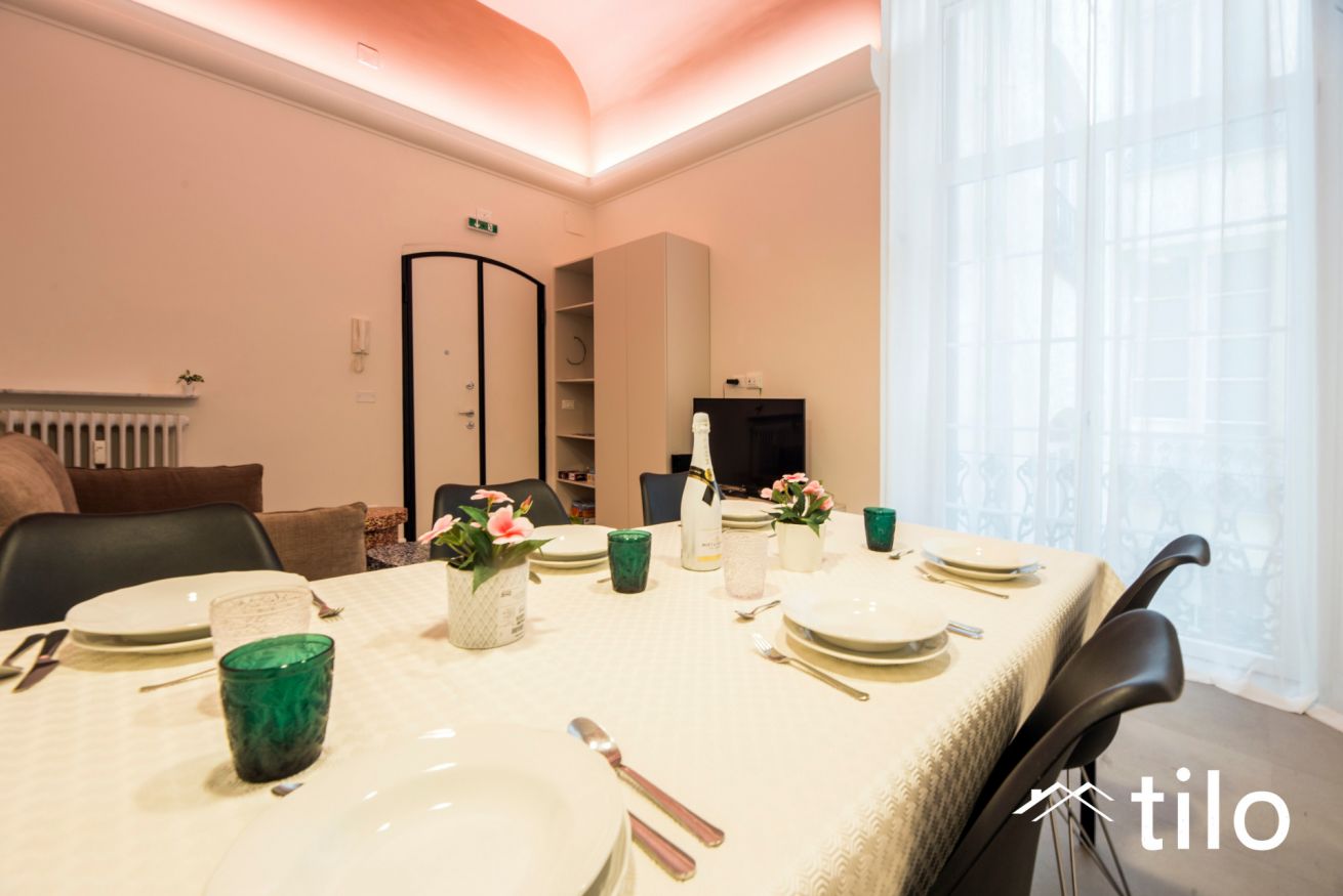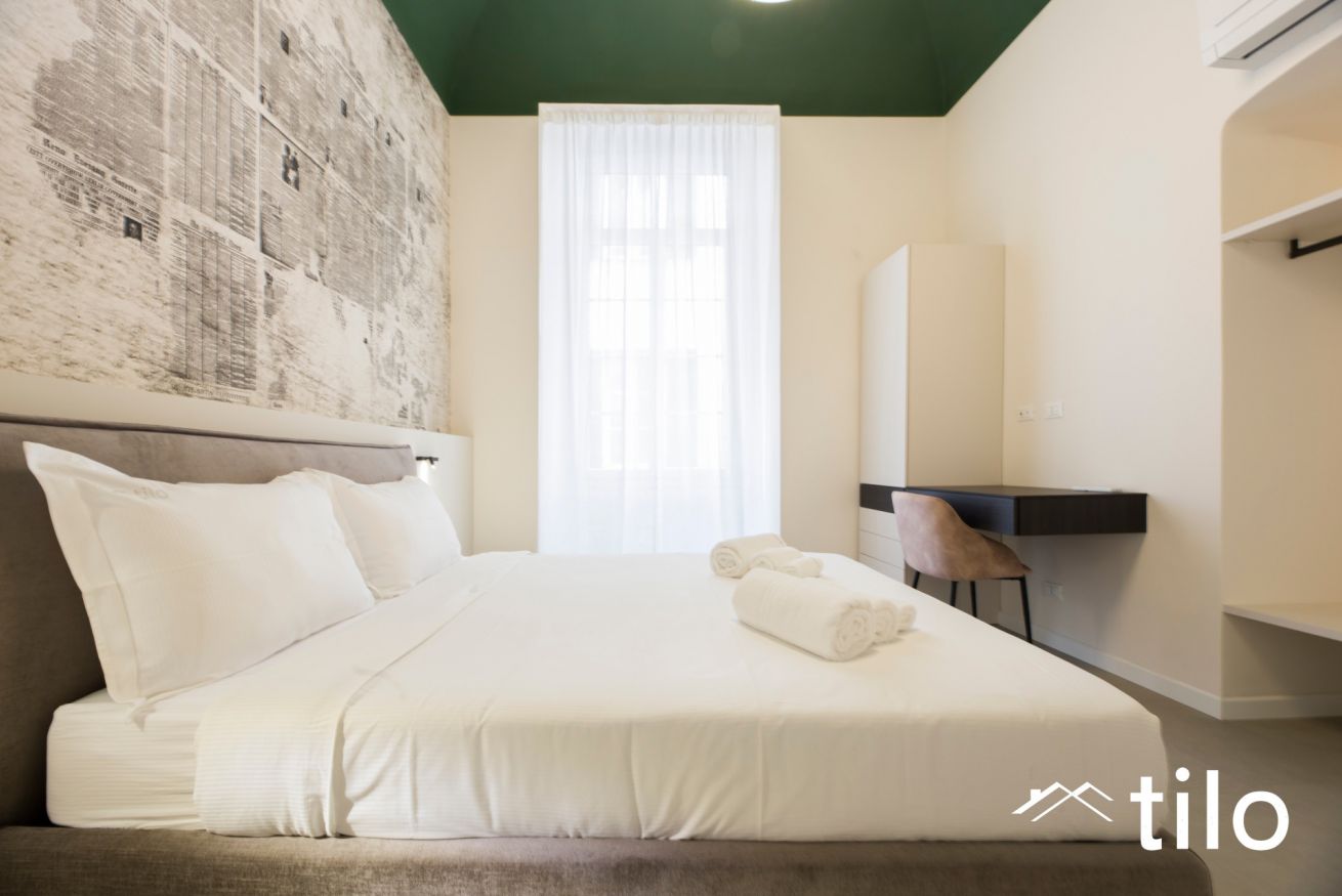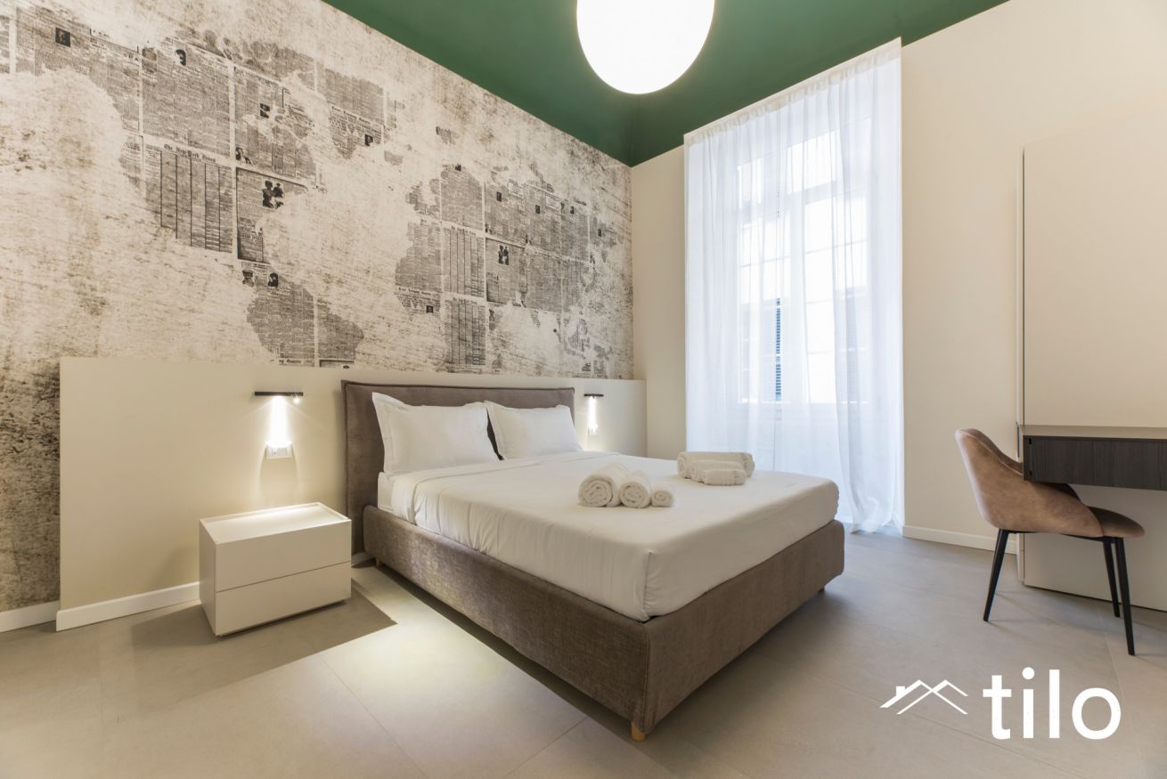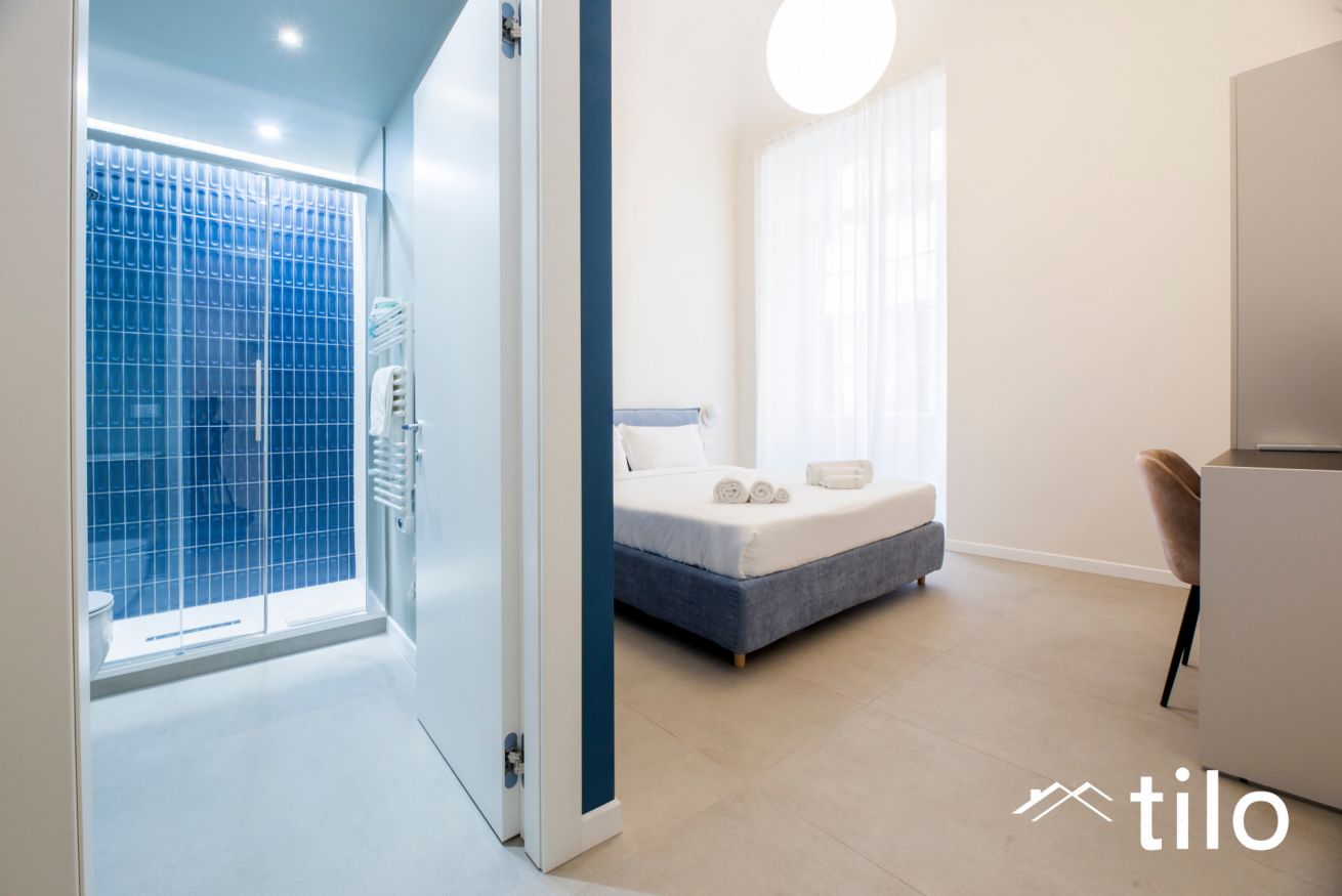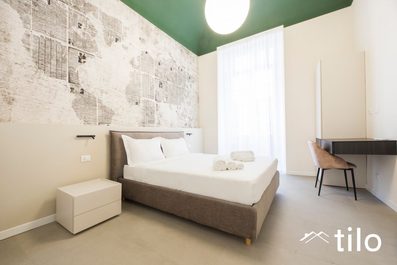 La zona giorno è il cuore della casa: un ampio open space che unisce soggiorno e cucina, perfetto per momenti di relax, lavoro o convivialità. Il soggiorno offre uno spazio accogliente dove rilassarsi dopo una giornata in città, mentre la cucina, completamente attrezzata, permette di preparare pasti in totale autonomia grazie a elettrodomestici moderni e utensili completi.