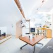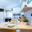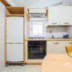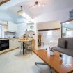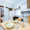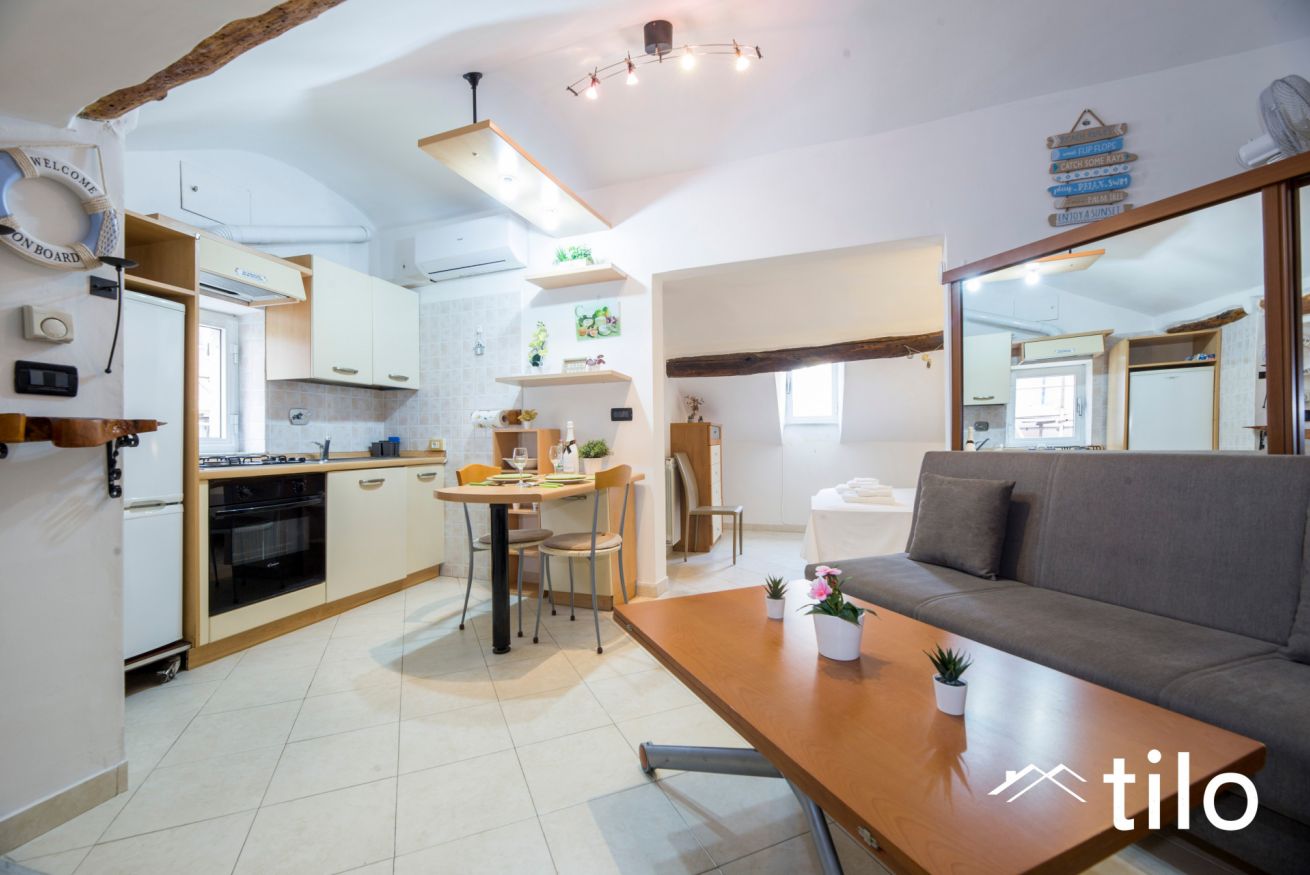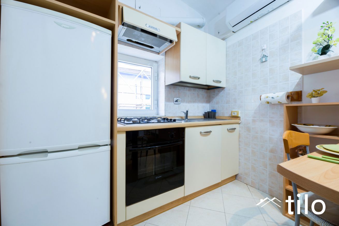 Il salotto è luminoso e ospita una pratica cucina attrezzata, ideale per preparare i pasti in autonomia e vivere momenti di relax.