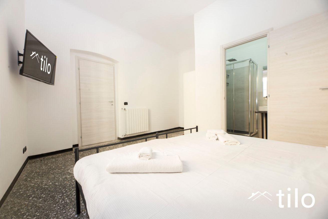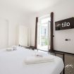 Camere luminose e spaziose, dotate di letti singoli o matrimoniali configurabili, biancheria da hotel e TV a schermo piatto con Smart TV Tilo.